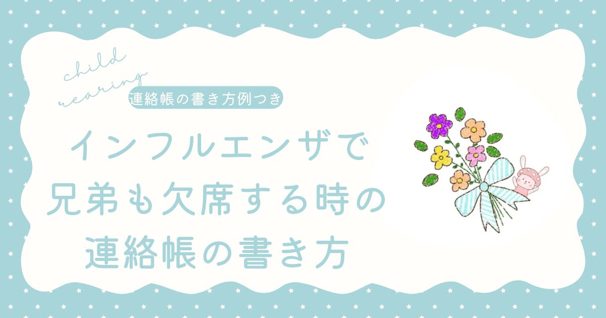 インフルエンザで兄弟も欠席する場合の連絡帳例文をまとめました。
